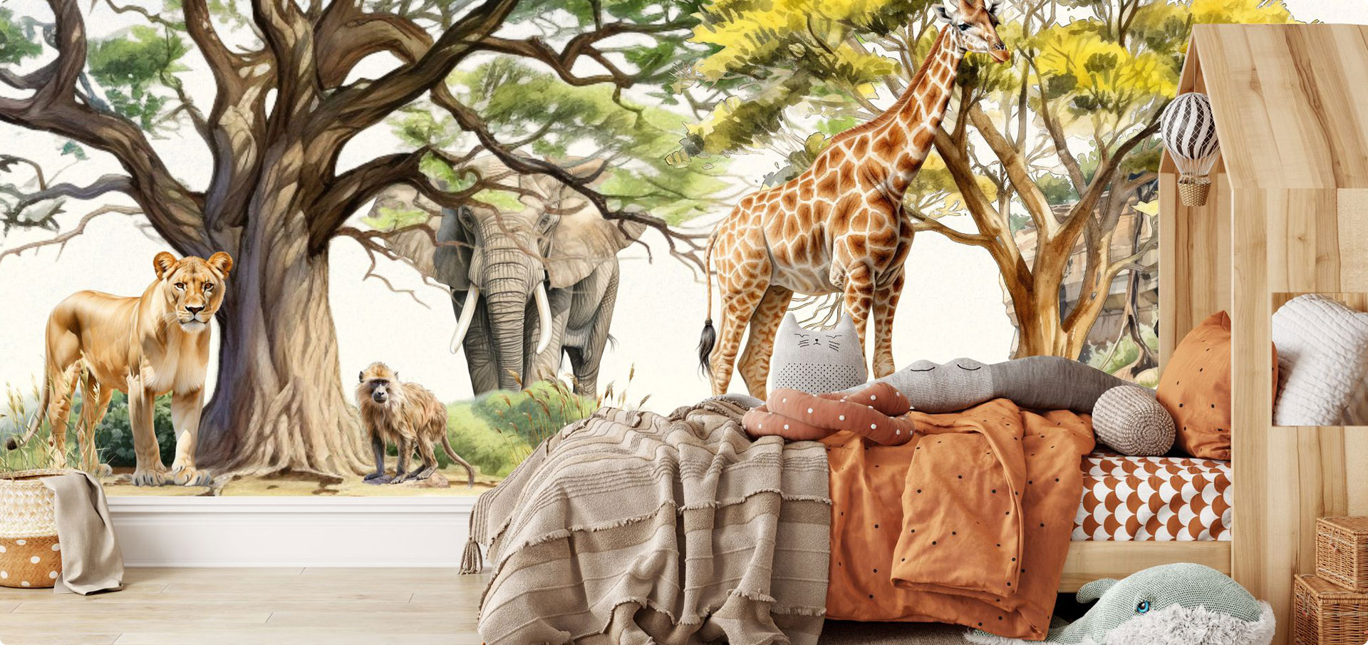 Tapety dla dzieci | zwierzęta safari akwarela M191