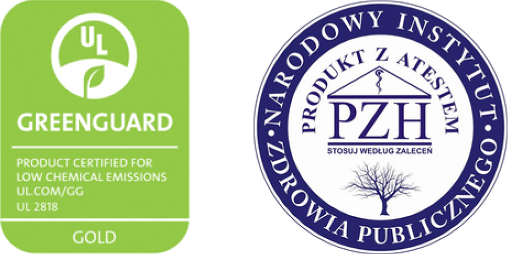 Nasze materiały posiadają atest PZH i certyfikat trudnopalności, a zastosowane tusze posiadają certyfikat Green Guard Gold, są w 100% bezpieczne do pokoju dziecka.