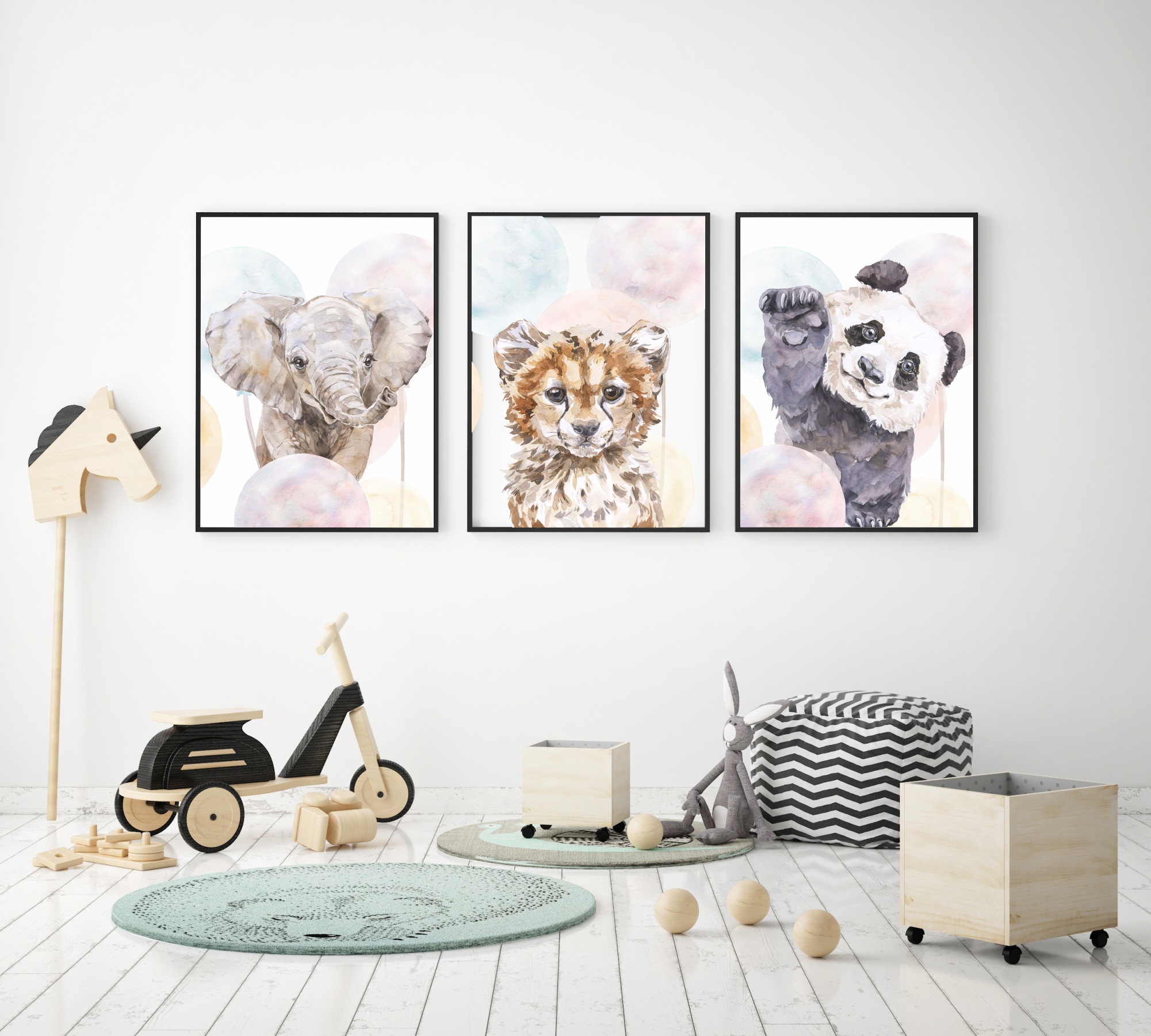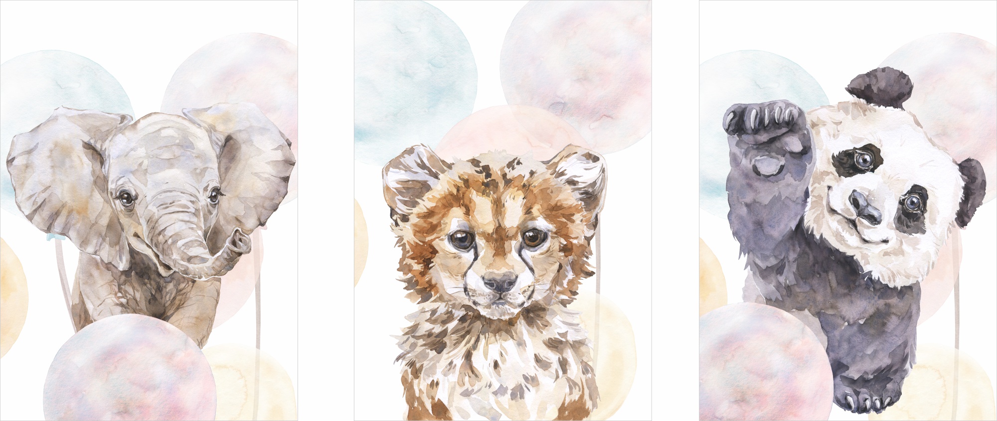 Zestaw 3 plakatów dla dzieci słoń, gepard, panda MP013