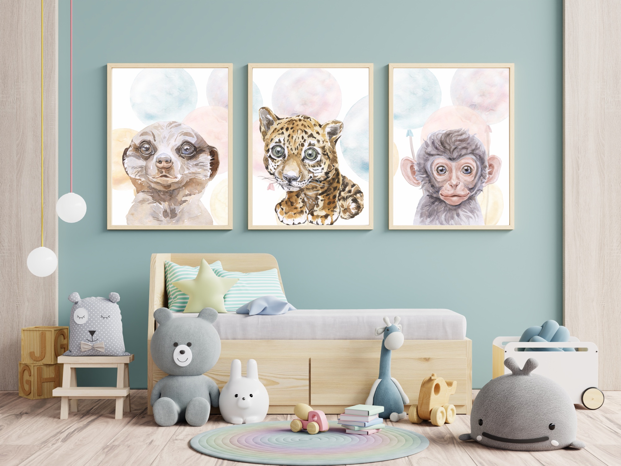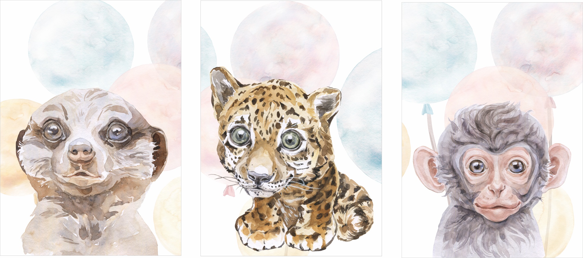 Zestaw 3 plakatów dla dzieci surogatka, puma, małpka MP016