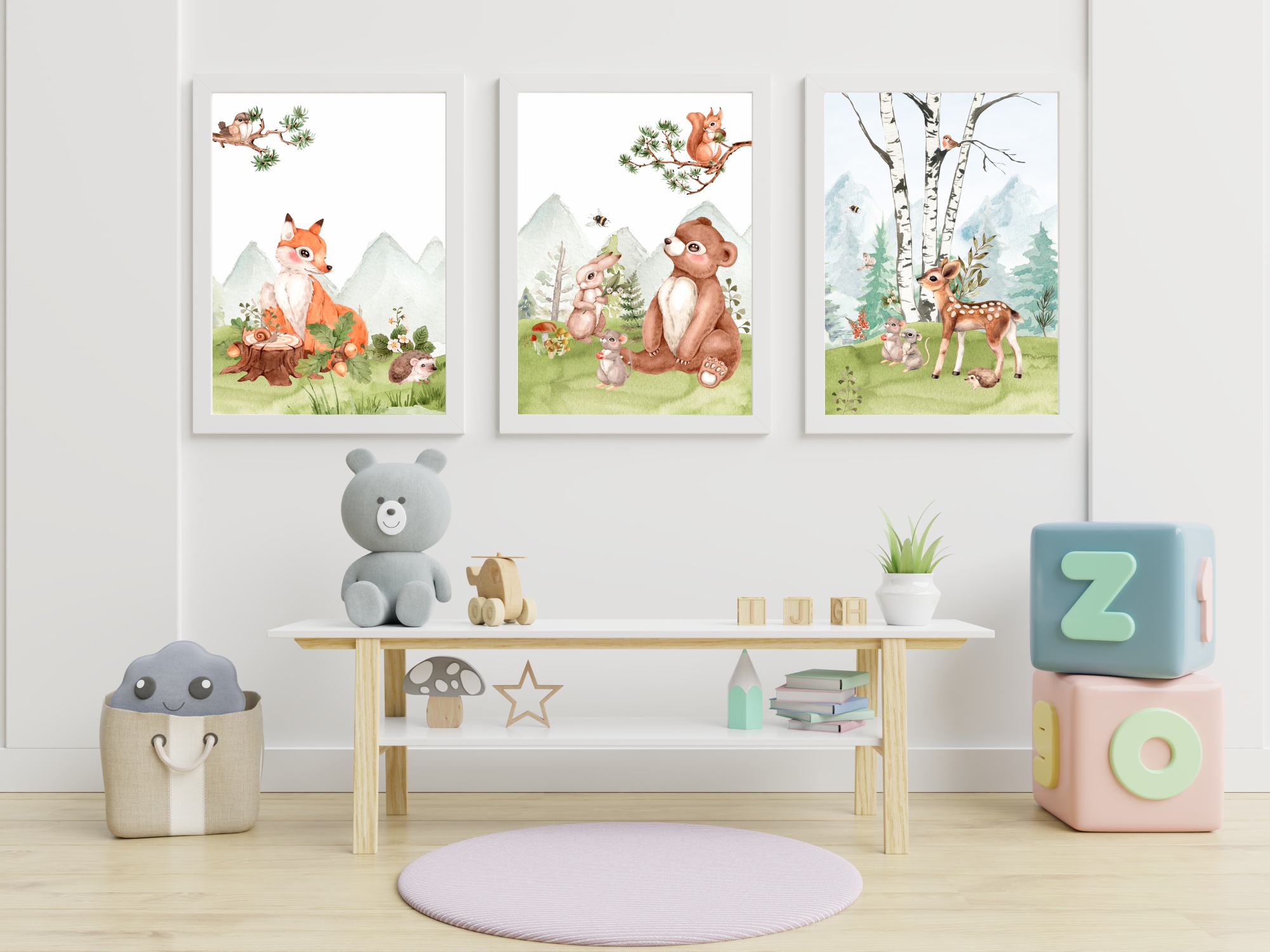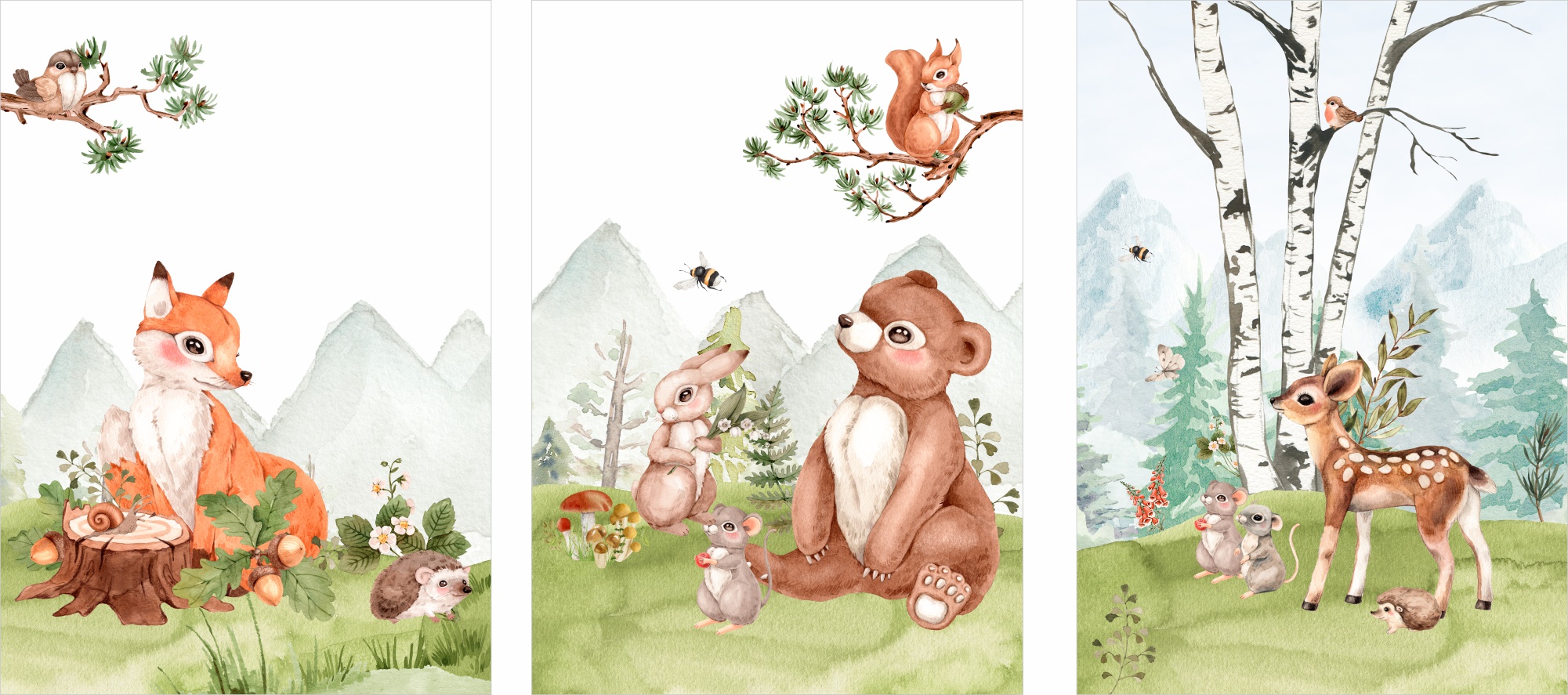 Zestaw 3 plakatów dla dzieci zwierzęta leśne MP018