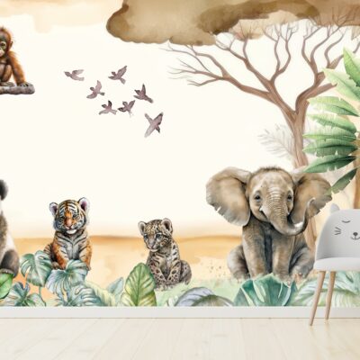 Fototapeta dla dzieci akwarelowe safari M019